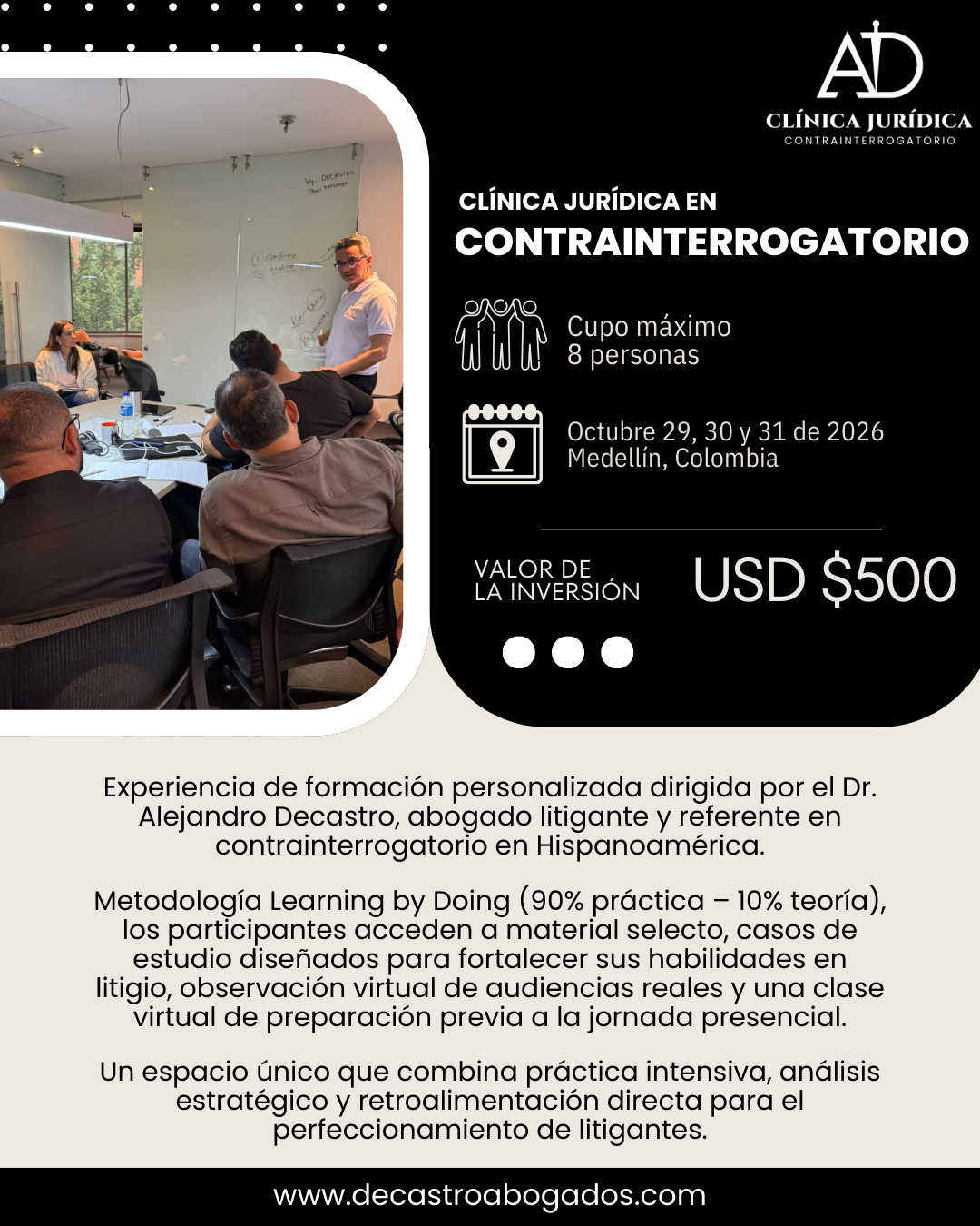 Con más de 30 años de trayectoria, nuestra firma combina la defensa de los derechos de sus clientes con la formación de nuevas generaciones de abogados, a través de programas prácticos basados en litigio real y excelencia académica.